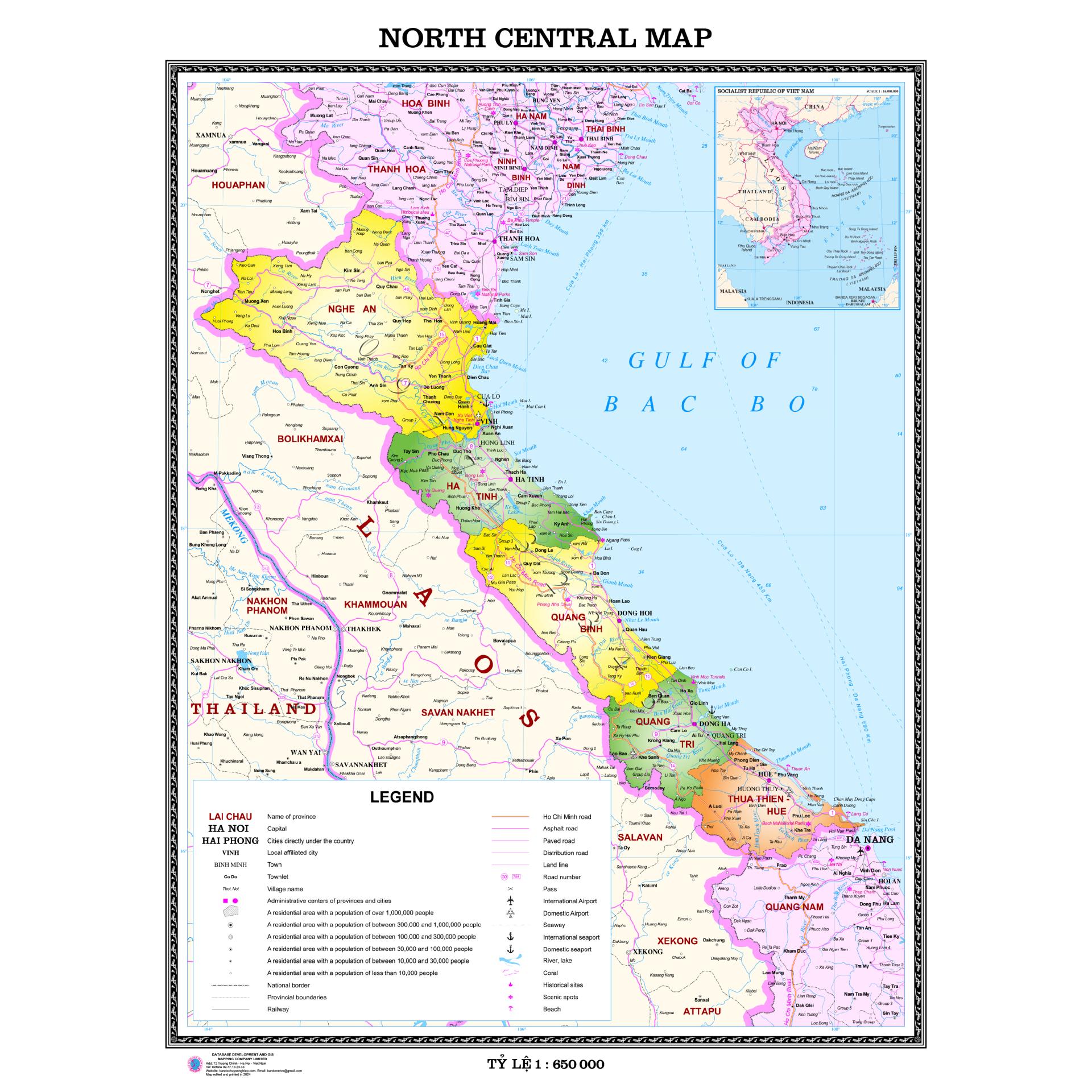 * Sản phẩm là một tờ Bản đồ Vùng Bắc Trung Bộ Nam Việt Nam, khổ A0, tiếng anh,  đã cán bóng nhiệt hai mặt. Giá sản phẩm chưa bao gồm thuế VAT.