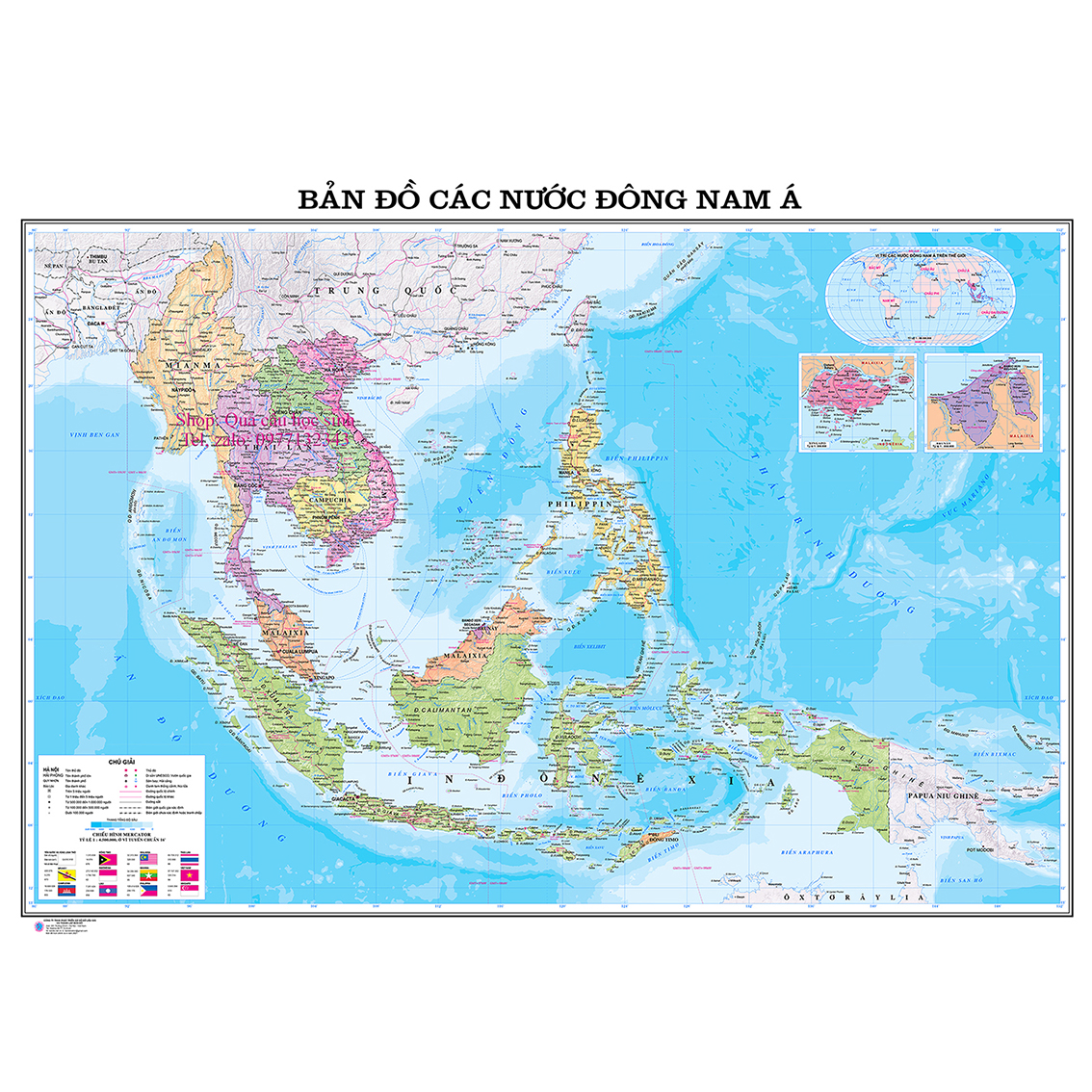 * Sản phẩm là một tờ Bản đồ hành chính các nước đông nam á, khổ 2A0 đã cán bóng nhiệt hai mặt. Giá sản phẩm chưa bao gồm thuế VAT.
