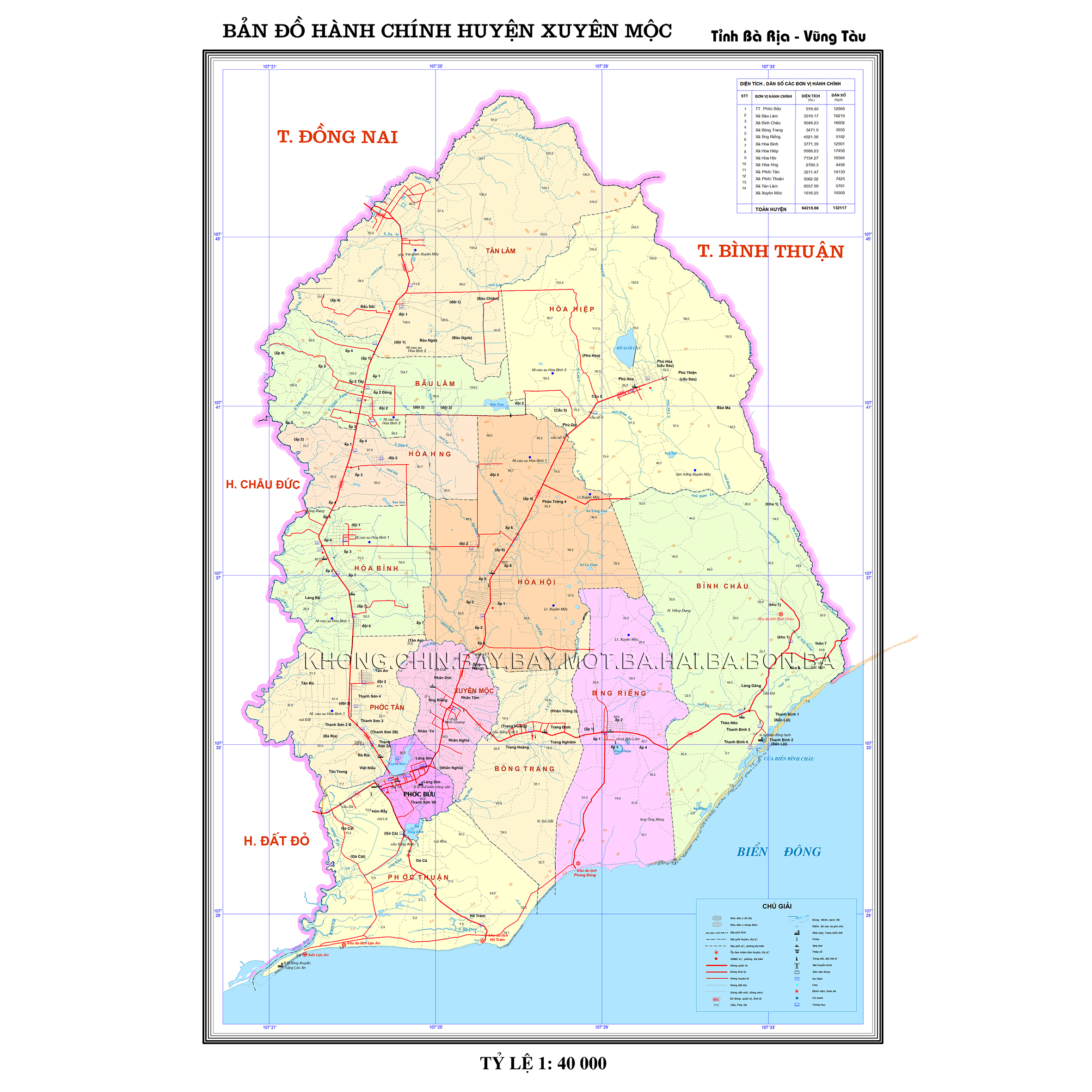 Bản đồ hành chính huyện Xuyên Mộc-Bà rịa vũng tàu, khổ A0