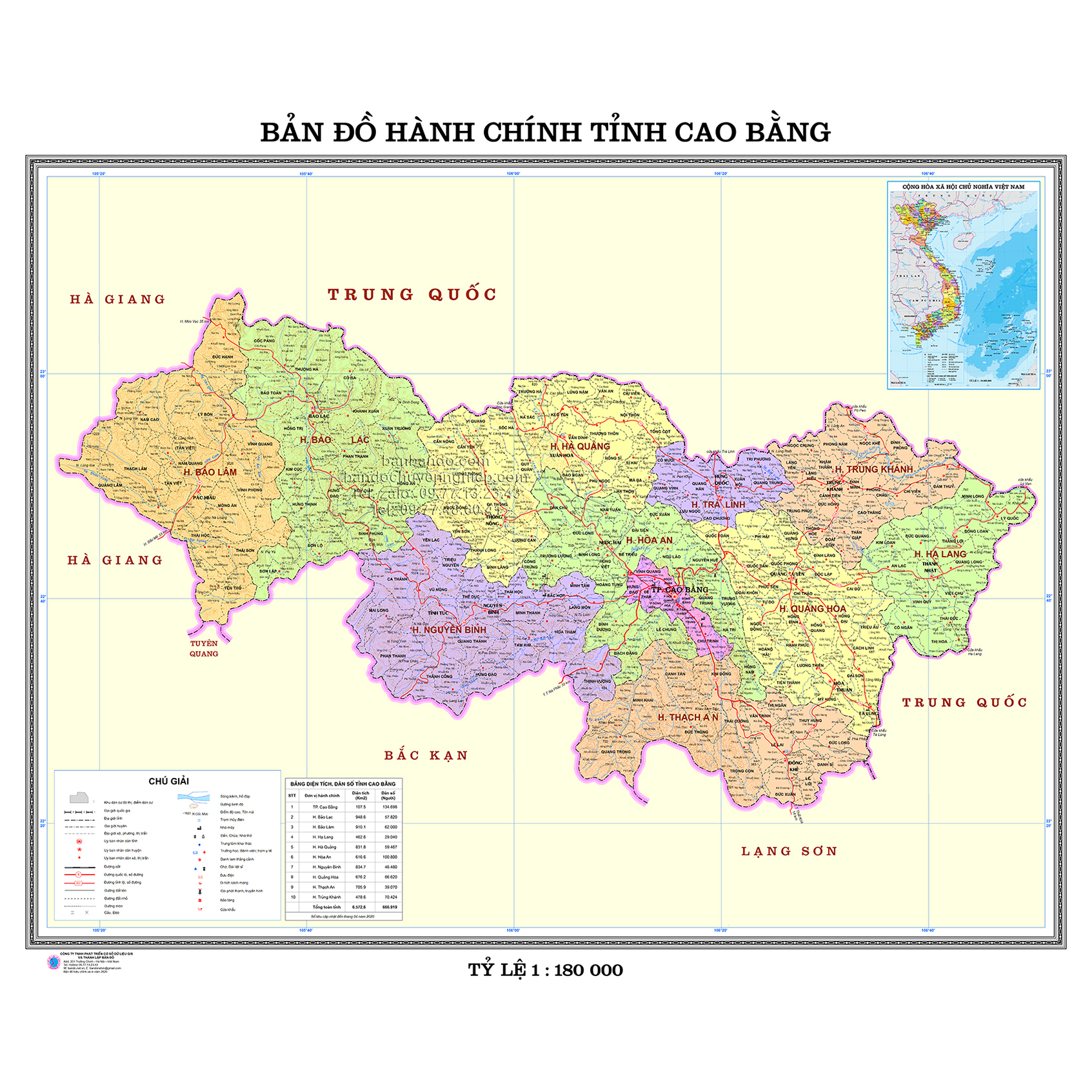 Bản đồ Hành chính tỉnh Cao Bằng A0