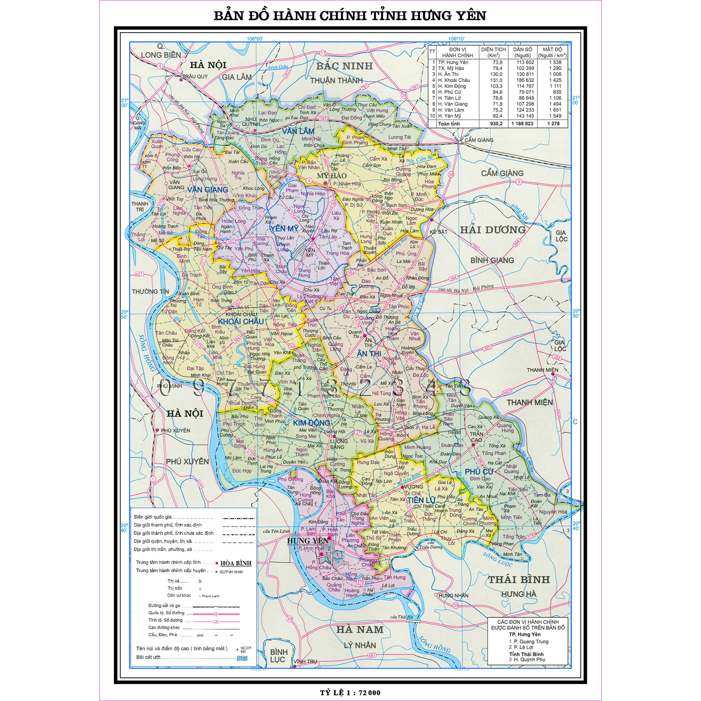 * Sản phẩm là một tờ Bản đồ hành chính tỉnh Hưng Yên A1 đã cán bóng nhiệt hai mặt.