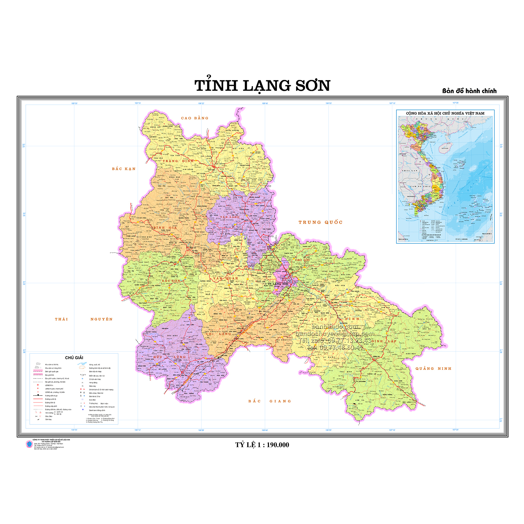 * Sản phẩm là một tờ Bản đồ Hành chính tỉnh Lạng Sơn A0 đã cán bóng nhiệt hai mặt.