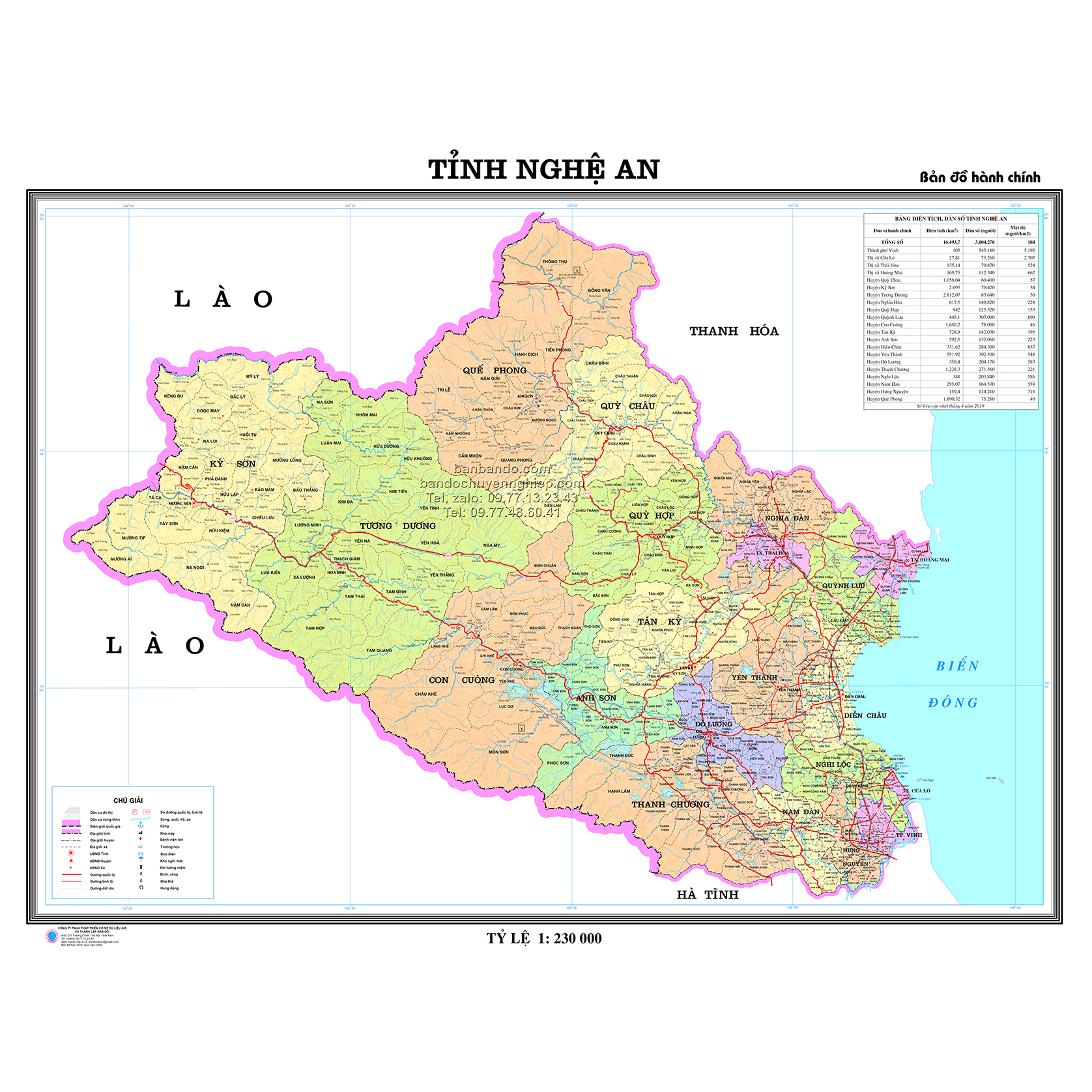 * Sản phẩm là một tờ Bản đồ Hành chính tỉnh Nghệ An A0 đã cán bóng nhiệt hai mặt.