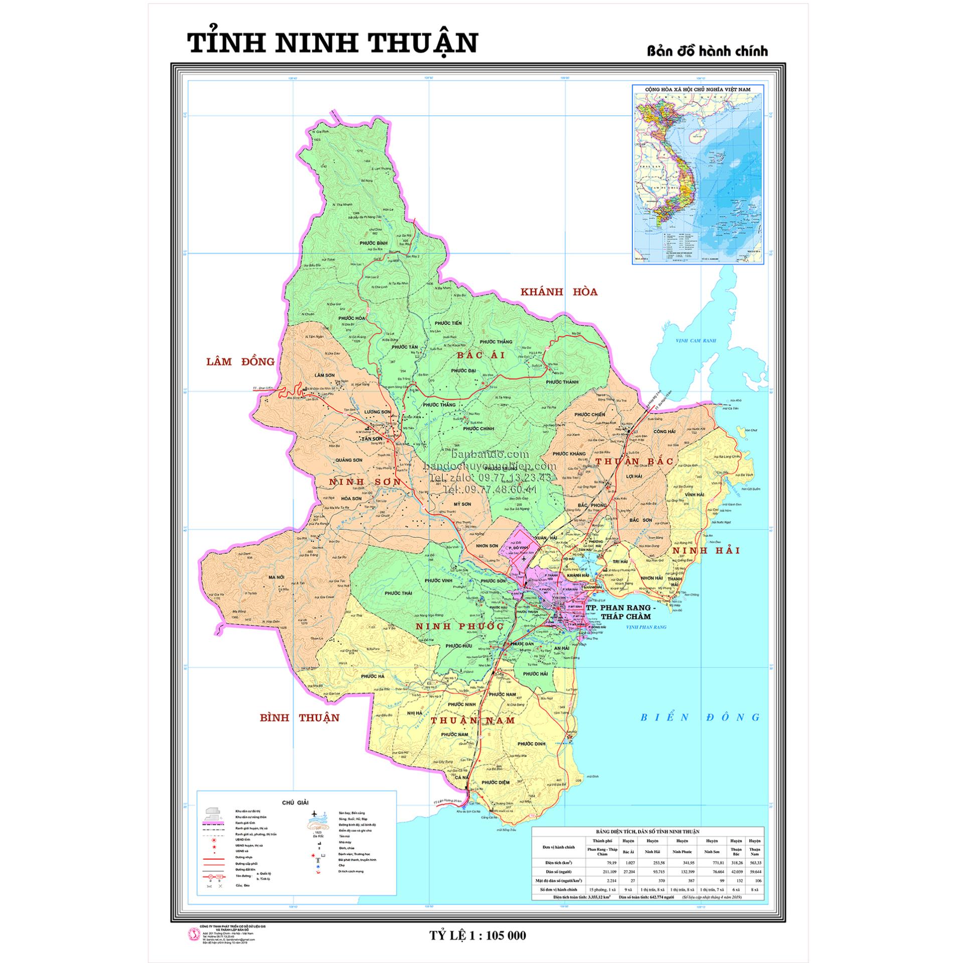 * Sản phẩm là một tờ Bản đồ Hành chính tỉnh Ninh Thuận A0 đã cán bóng nhiệt hai mặt.