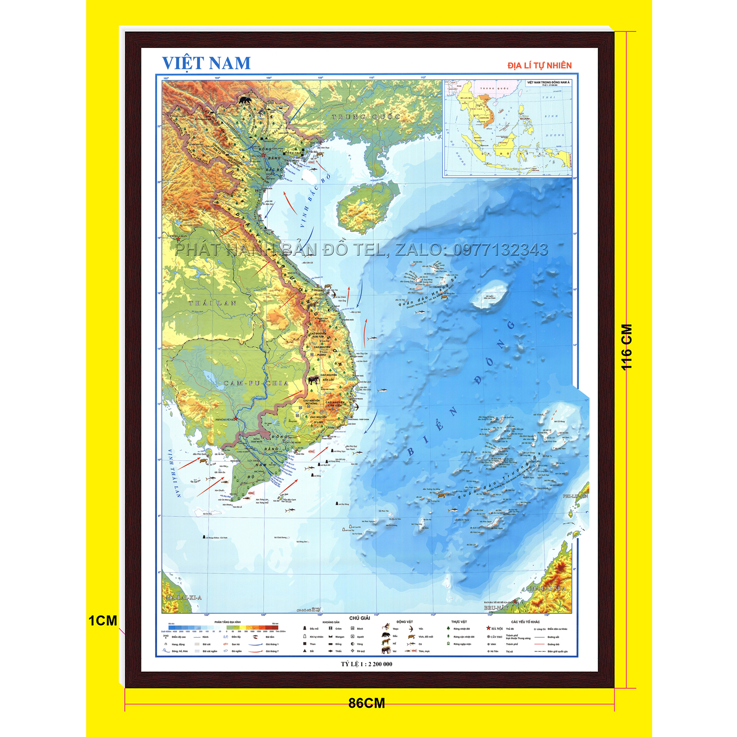 * Sản phẩm là một tờ Khung gỗ Bản đồ Địa lý tự nhiên Việt Nam, khổ A0 đã cán bóng nhiệt hai mặt.